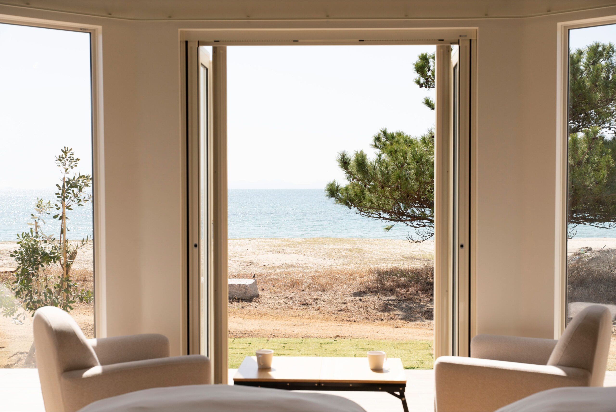瀬戸内のビーチを貸し切り!- 会場は美しい中道海水浴場に佇む「HAV hygge setouchi」。 目の前に広がる瀬戸内海のパノラマは、子どもたちの視座を一気に高め、自由な発想を促す最高のキャンパスになります。周囲の目を気にせず没頭できる完全貸切環境だからこそ、子どもたちは果敢に挑戦し、保護者様は心地よい静寂の中でその成長を頼もしく見守ることができます。子供達は思いっきり、大人はリラックスして活動できます。