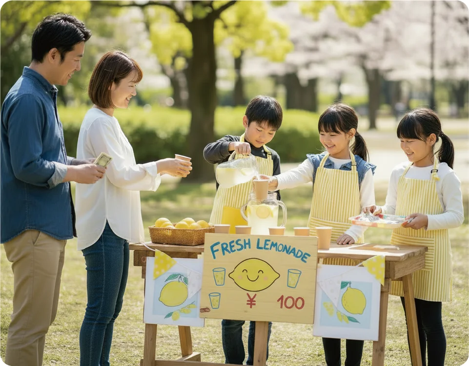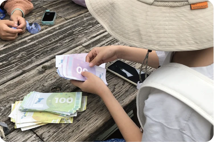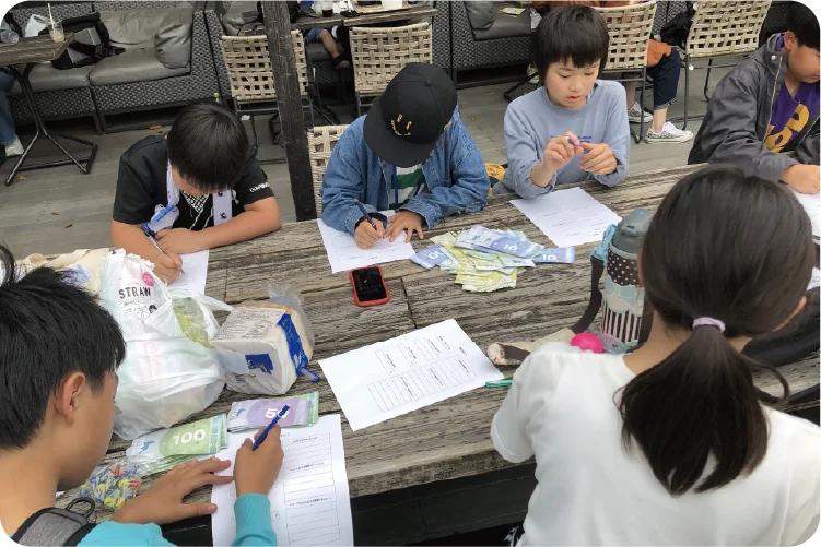 ありません。子どもたちがビジネスに使うお金は運営側から支給されます(一人につき1,500円)。また、保護者様が子どものビジネスに使うお金も疑似通貨が支給されます。