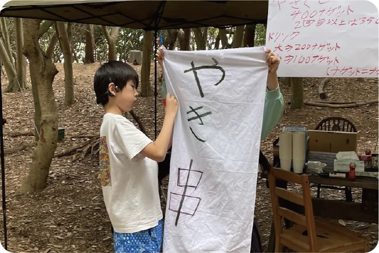 プログラム中はお子さんをお預かりしますが、お迎えに来る時間(17:00〜19:00ごろ)にかけては、保護者様は子どもたちのお客さんになっていただけます。(この時だけ使える疑似通貨をお渡しします)