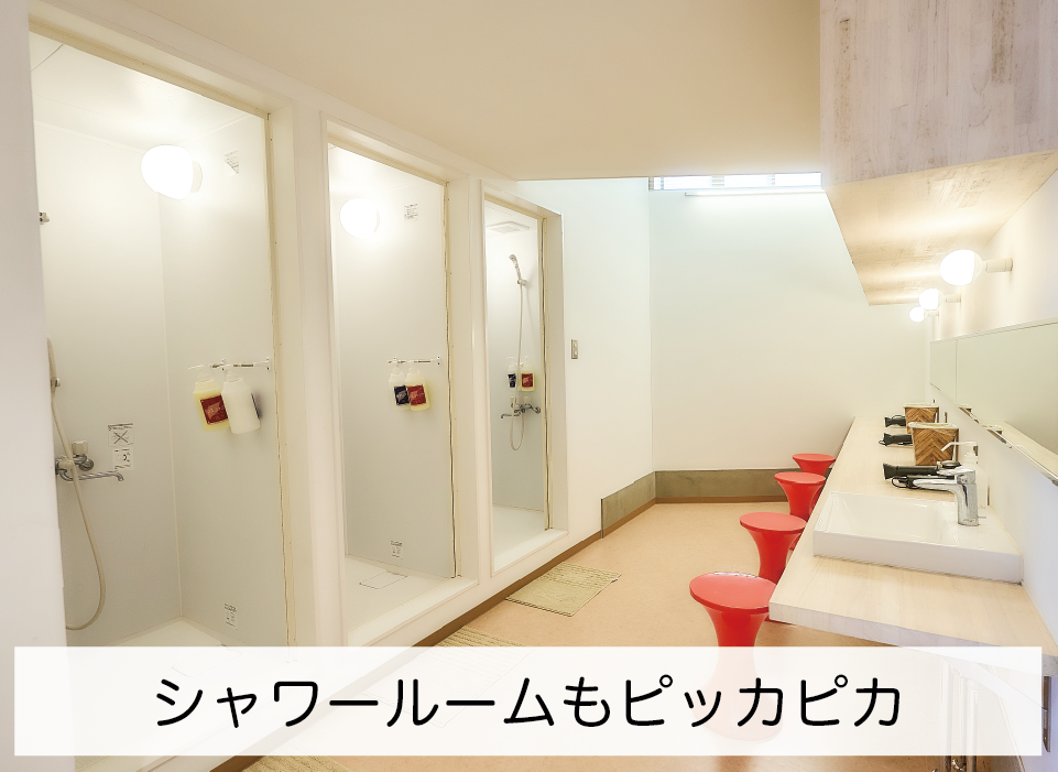 どうなっていますか?トイレと温水シャワーは男女別に複数ずつ設置されていますので、混み合うことなく24時間ご利用いただけます。備え付けのシャンプー・リンス・ボディーソープ・ドライヤーもお使いいただけますが、持ち込みも可能です。