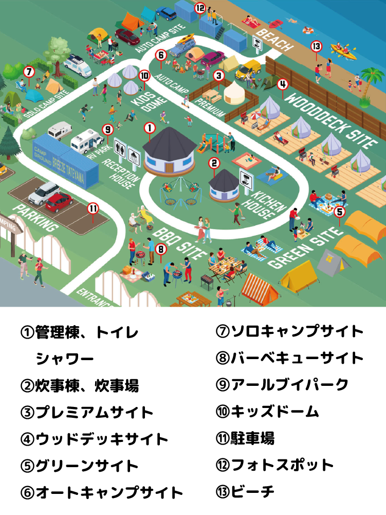 会場の「CAMPGROUND BREEZE TATEYAMA」に集合していただきます。お車は無料の駐車場に停めておけます。