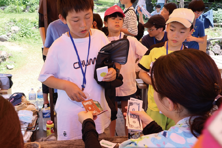 キャンプ期間中、保護者の方は子どもたちが展開するビジネスのお客様役を担っていただくことになります。疑似通貨も多めにお渡ししますので、子どもたちが用意する食事や飲み物、楽しいイベントにどんどんお金を使い経済を回してください。