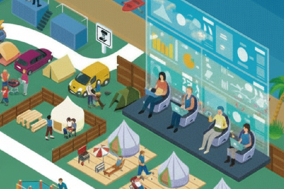 キャンプ場内にはさまざまなテントやドームハウスがあり、どこを選択できるかは子どもたちの稼ぎに左右されます。