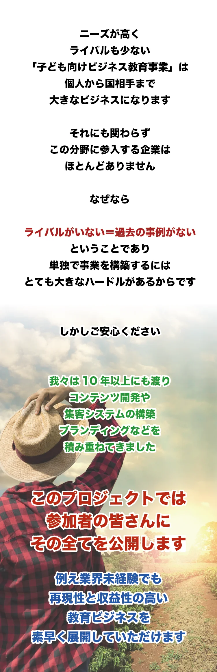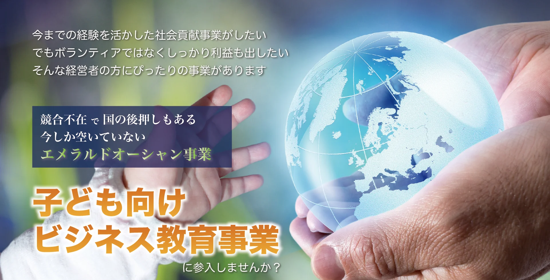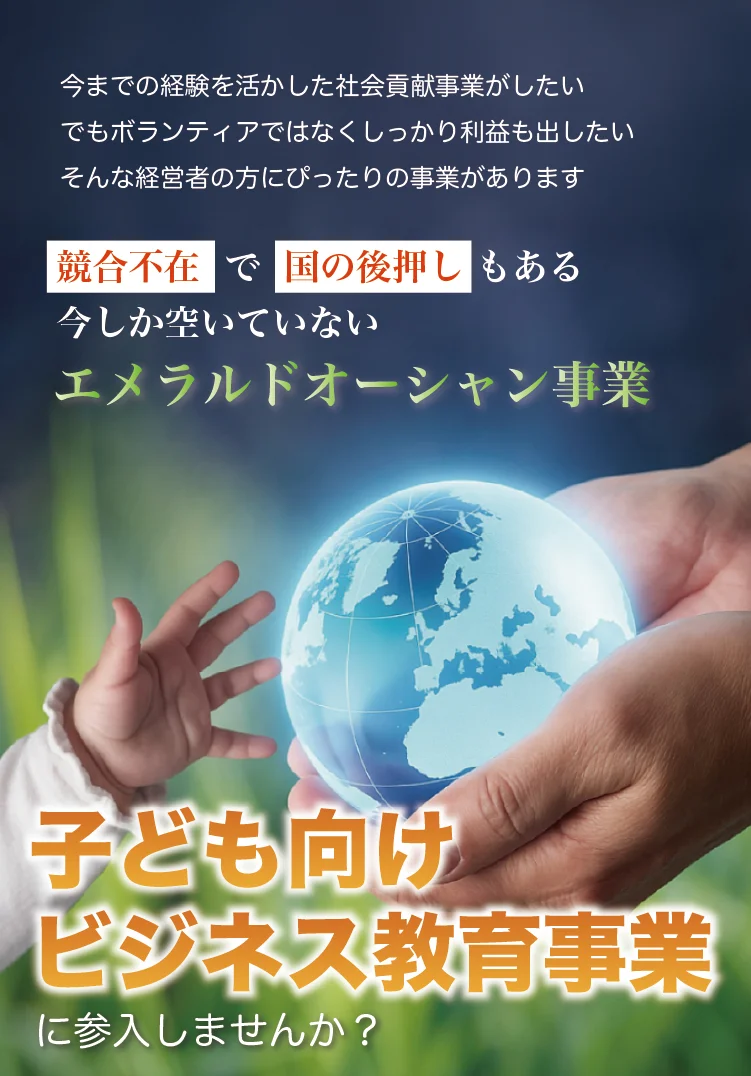 本物の教育の「志」は、人から人へと受け継がれ、あなたがいなくなった後も生き続けます。さらに、教育事業ほど社会貢献性が高く、影響力の大きい事業はありません。「教育に携わっている」と伝えるだけで、多くの人が自然と協力してくれるようになります。